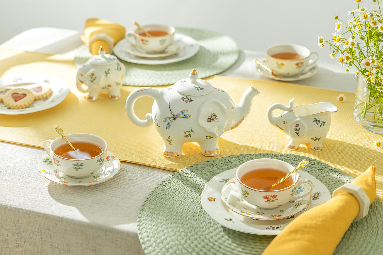 Delight in the charm of our Elephant Collection, where graceful porcelain meets playful design. Each teapot, cup, and serving piece is beautifully hand-detailed with floral patterns and golden accents—perfect for gifting or adding a touch of joy to your teatime ritual.