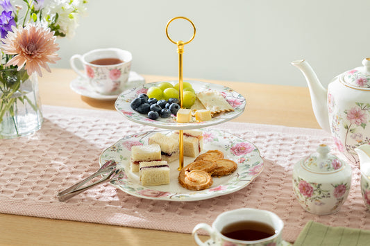 Satin Shelley Rose Bud Fine Porcelain 2-Tier Server