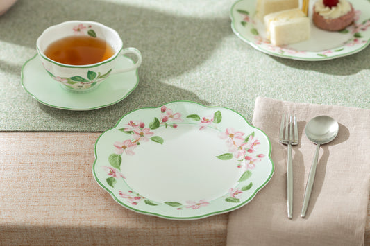 Apple Blossom Green Lattice Bone China Appetizer Plate
