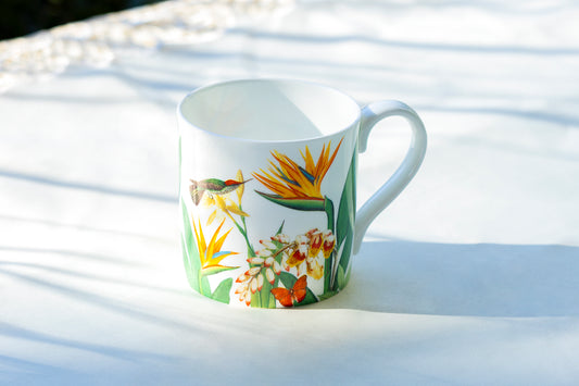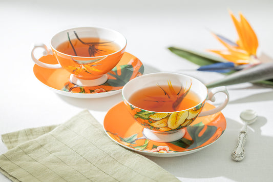 Bird of Paradise and Monstera Leaf Bone China Tea Cup and Saucer