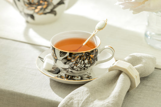 Black Gold Peony Fine Porcelain Tea Cup and Saucer