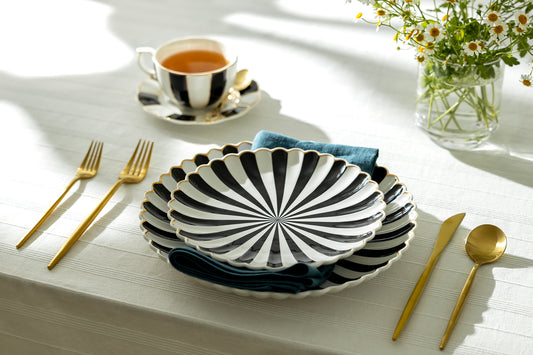 Black and White Stripe Scallop Fine Porcelain Dessert/Dinner Plate