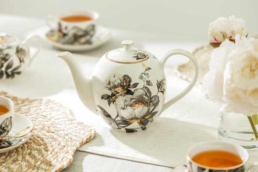 Black Gold Peony Fine Porcelain Teapot - CLEARANCE