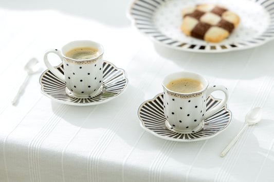 Black Josephine Stripes and Dots 2oz Demitasse Cups and Saucers with Gift Box