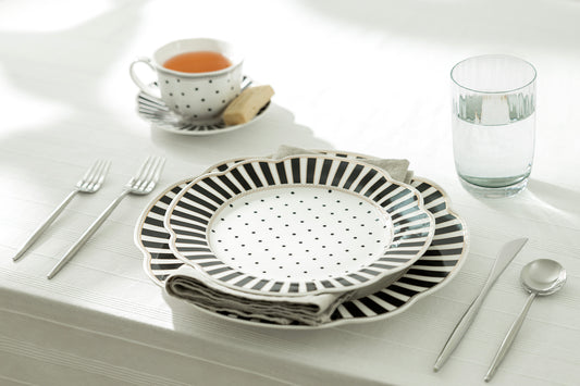 Black Josephine Stripes and Dots Fine Porcelain Dessert/Dinner Plate