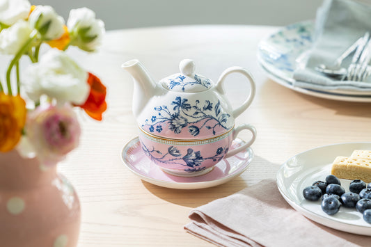 Blue Blossom Pink Fine Porcelain Tea For One Set