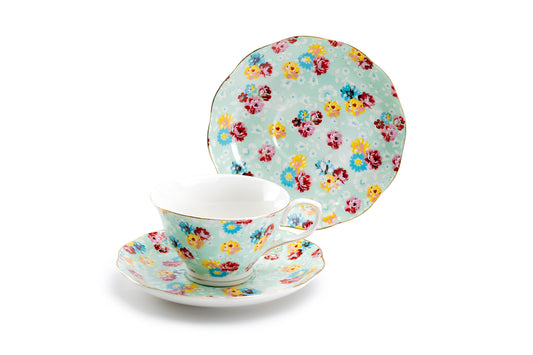 Blue Shabby Rose Fine Porcelain Tea Cup and Saucer