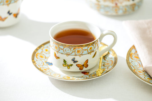 Butterflies with Blue Ornament Fine Porcelain Cup and Saucer