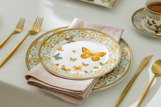 Butterflies with Blue Ornament Fine Porcelain Dessert/Dinner Plate