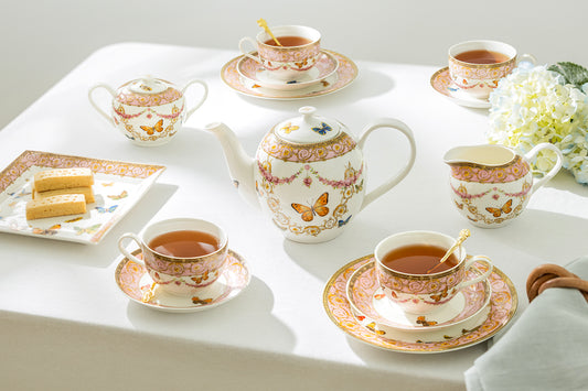 Butterflies with Pink Ornament Fine Porcelain 11-Piece Tea Set