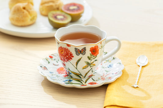 Butterfly Poppy Fine Porcelain Tea Cup and Saucer