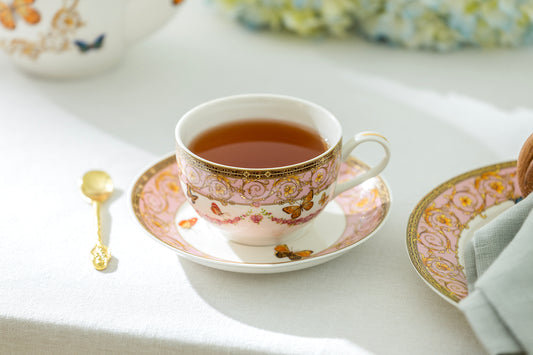 Butterflies with Pink Ornament Fine Porcelain Tea Cup and Saucer
