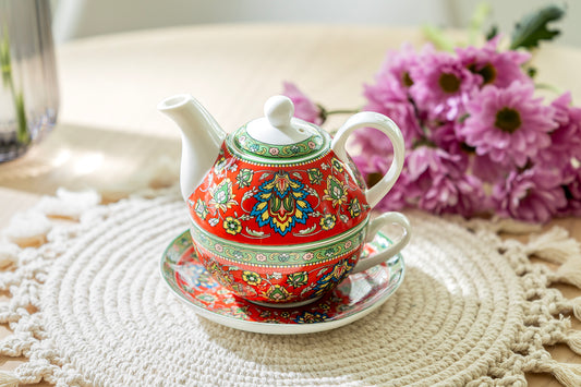 Emerald Geo Bloom Fine Porcelain Tea For One Set