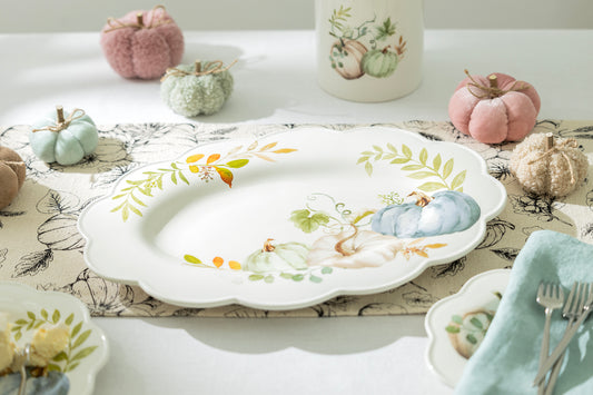 16" Fall Pumpkins Scallop Serving Platter