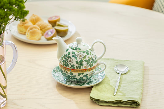 Gift Boxed Mint Flower Garden Fine Porcelain Sugar Creamer & Serving Tray Set