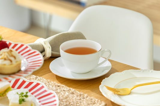 Gold Red Stem Rose Bone China Tea Cup and Saucer