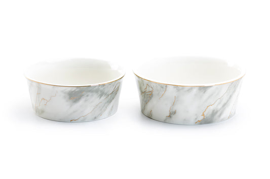 Gray Marble Gold Fine Porcelain Pet Bowl - 2 Sizes Available