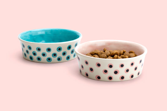 6.25" Organic Blue Dots Heavy Weight Ceramic Pet Bowl