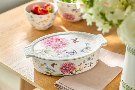 Hydrangea with Butterflies 1.4 qt. Oval Casserole