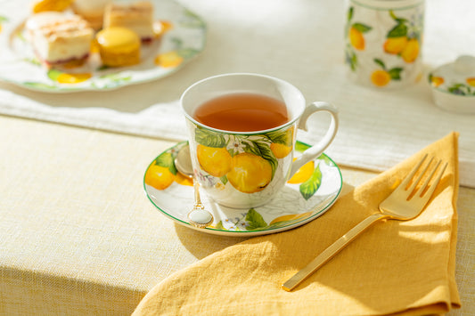 Lemon Garden Fine Porcelain Tea Cup and Saucer