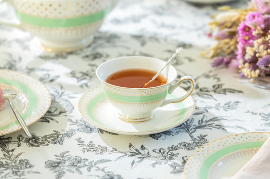 Mint Green Stripe with Gold Dots Fine Porcelain Tea Cup and Saucer