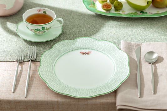 Mint Green Stripe with Gold Dots Fine Porcelain Tea Set