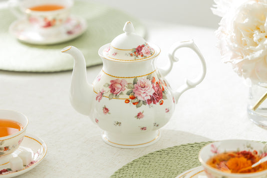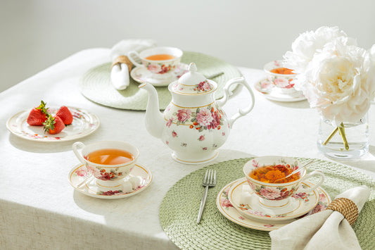 Peony and Strawberry Cream Bone China 9-Piece Tea Set
