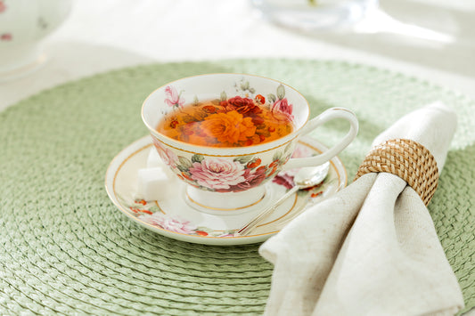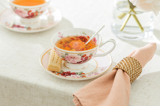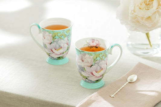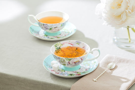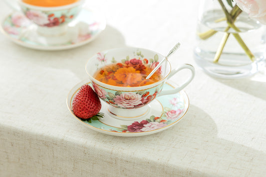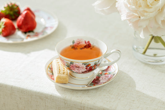 Peony and Strawberry Mint Bone China Tea Cup and Saucer