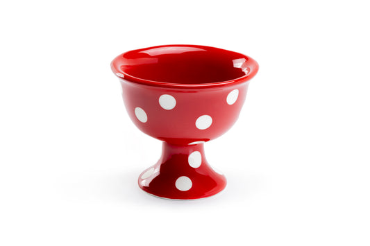 Polka Dots American Red / Navy Blue Footed Ice Cream Bowl