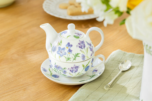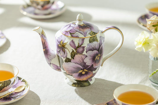 Purple Gold Pansy Bone China 9-Piece Tea Set