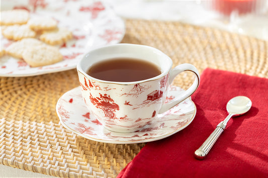 Red Village Fine Porcelain Tea Cup and Saucer