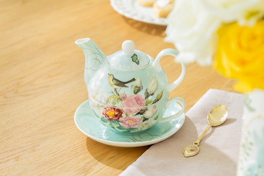 Robin's Rose Garden Fine Porcelain Tea For One Set