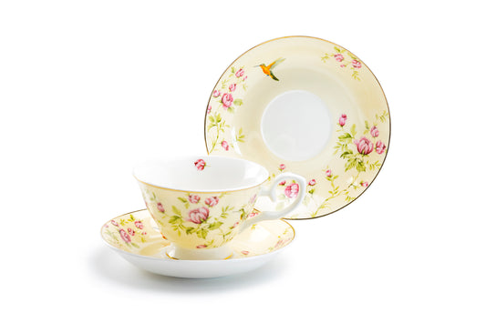 Rose Bud with Hummingbird Yellow Bone China Tea Cup and Saucer