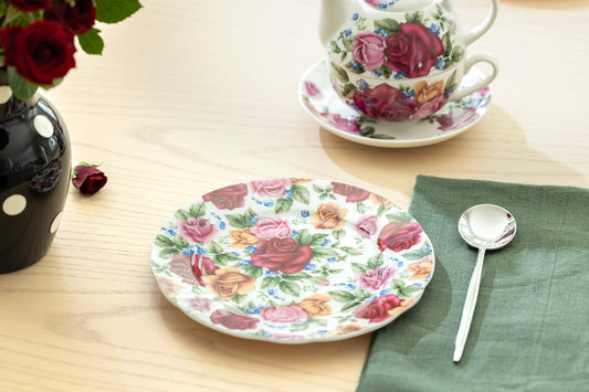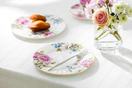 7.5" Victorian Petite Rose White Bone China Dessert Plate