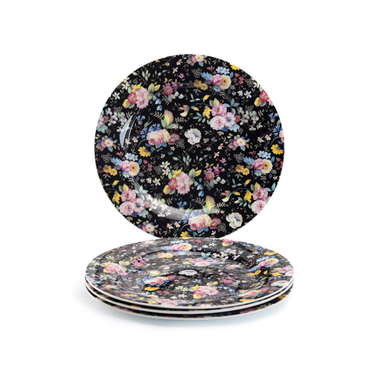 7.5" Victorian Petite Rose Black Bone China Dessert Plate