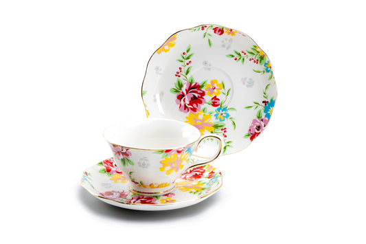 Shabby Rose Fine Porcelain Tea Cup and Saucer