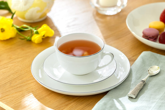 Silver Rim Blanc Bone China Cup and Saucer