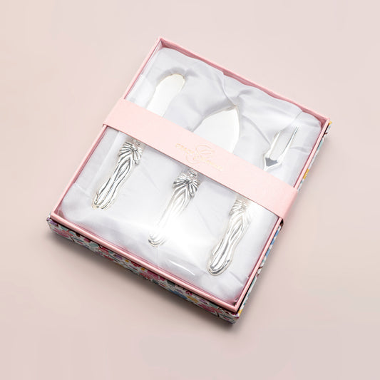 Silver Plated Hostess Flatware Set of 3 with Ribbon Handle Design