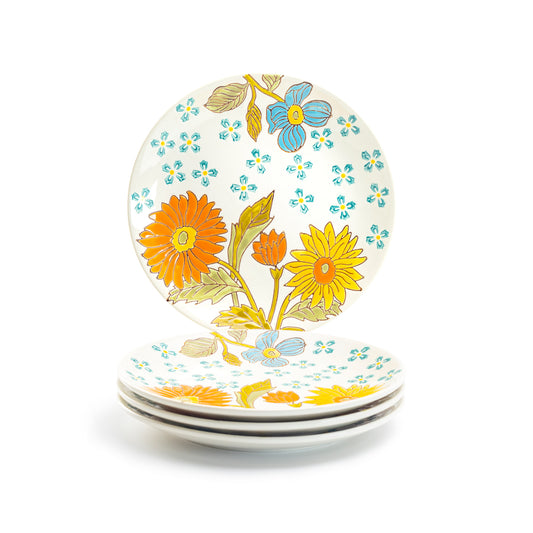 8" Assorted Rose Chintz Fine Porcelain Dessert Plate with Gold Rim Set of 4