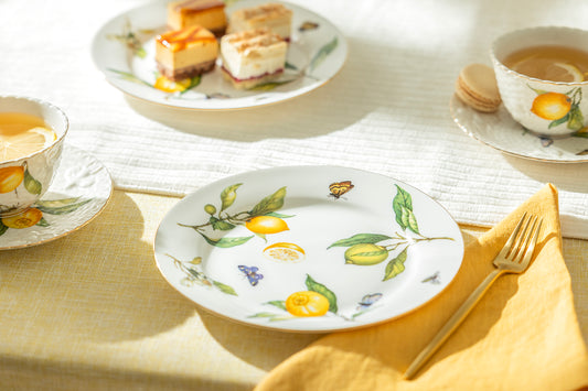 8" Lemon Butterfly Fine Porcelain Dessert Plate