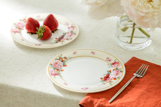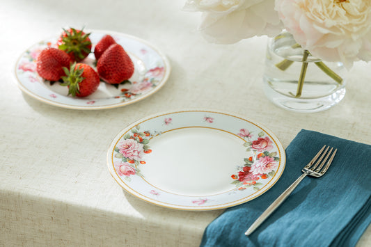 7.75" Peony and Strawberry Cream Bone China Dessert Plate
