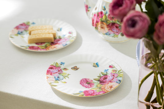 7.75" Sandra's Rose with Butterflies Bone China Dessert Plate