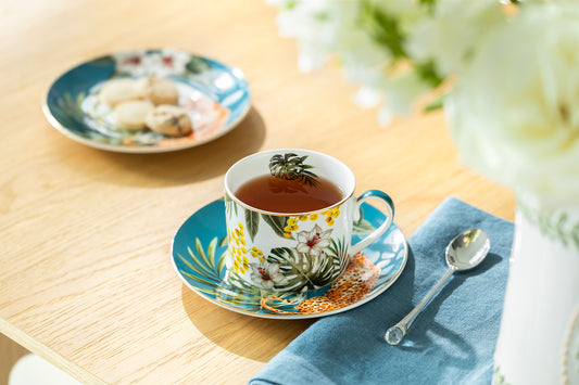 Tropical Leaves 2oz Espresso Cups and Saucers with Gift Box