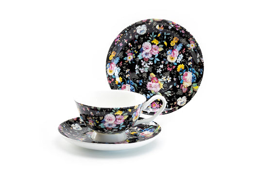 Victorian Petite Rose Black Bone China Cup and Saucer