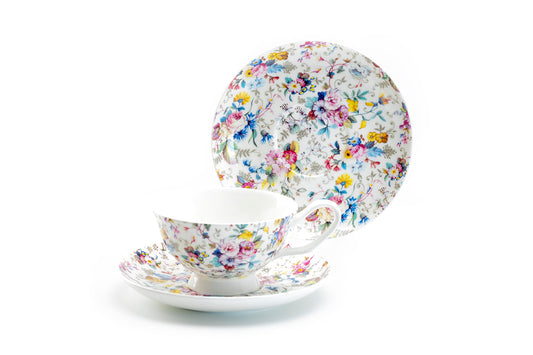 Victorian Petite Rose White Bone China Cup and Saucer