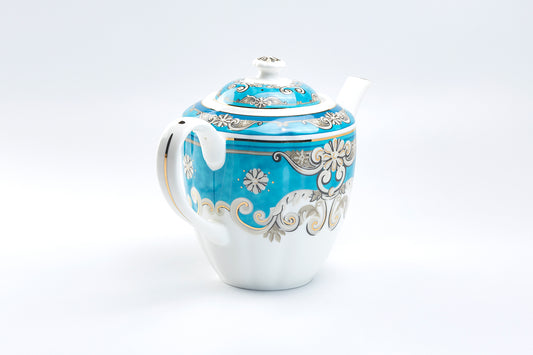 Venetian Blue Scroll Porcelain Teapot