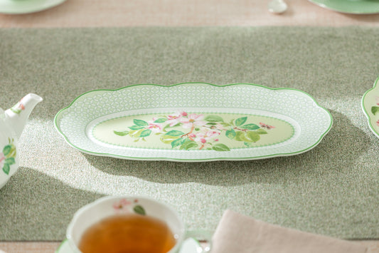 13.75" Apple Blossom Orchard Bone China Oval Serving Platter with Gift Box