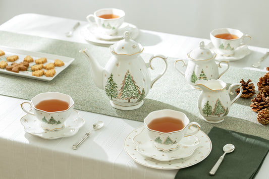 Christmas Pine Trees Fine Porcelain Sugar & Creamer Set