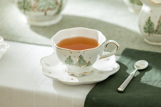 Christmas Pine Trees Fine Porcelain Tea Cup and Saucer
