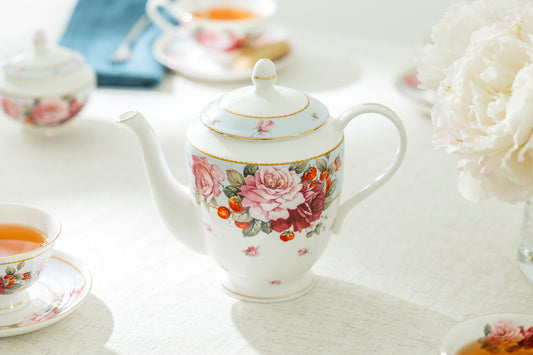 Peony and Strawberry Blue Bone China Teapot - CLEARANCE